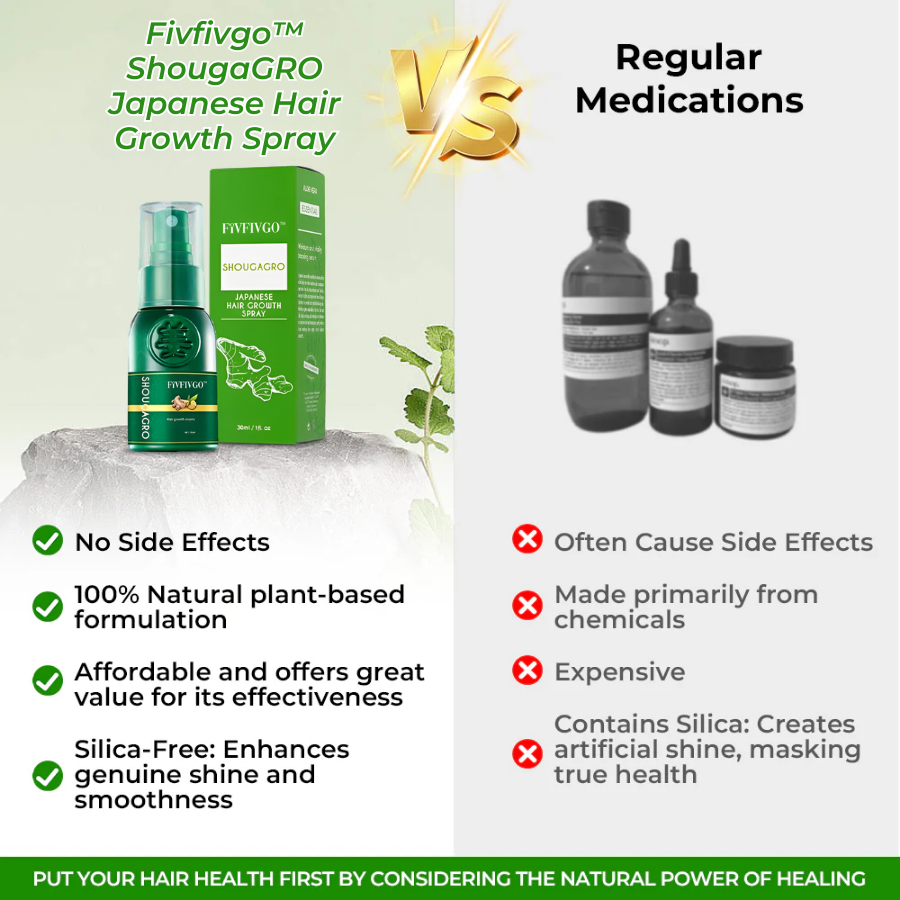 Unser Fivfivgo™ Neu ShougaGRO Japanisches Haarwuchsspray ist die perfekte Lösung für Sie - eine rein natürliche Formel, die das Haarwachstum unterstützt und fördert.