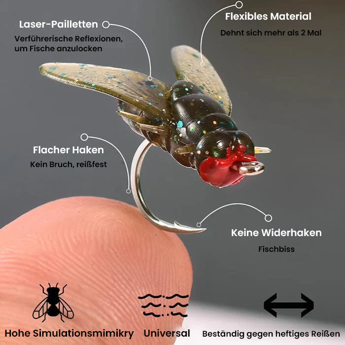 🎣Realistischer Fliegenköder, ein Leckerbissen, dem die Fische nicht widerstehen können.