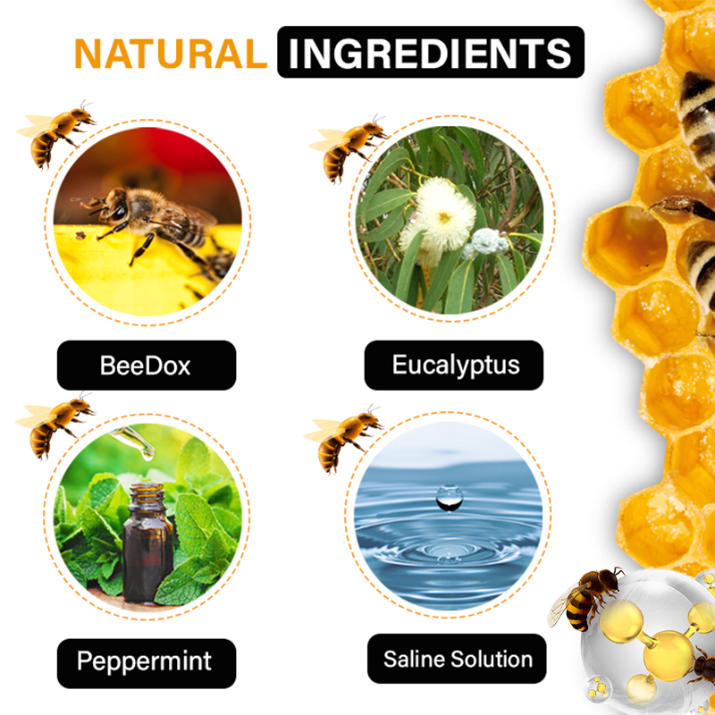 • Ingredients: BeeDox, Eucalyptus, Saline Solution, Peppermint