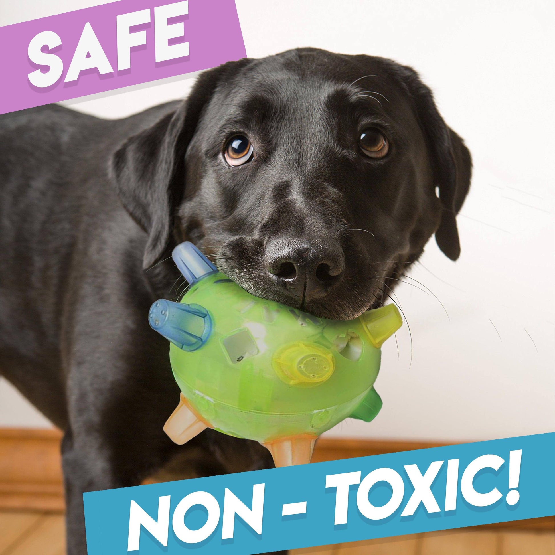 ✔ Hyperactive Toy: Jumps automatically. Just tap the button and watch it bounce away for your dog to chase it.