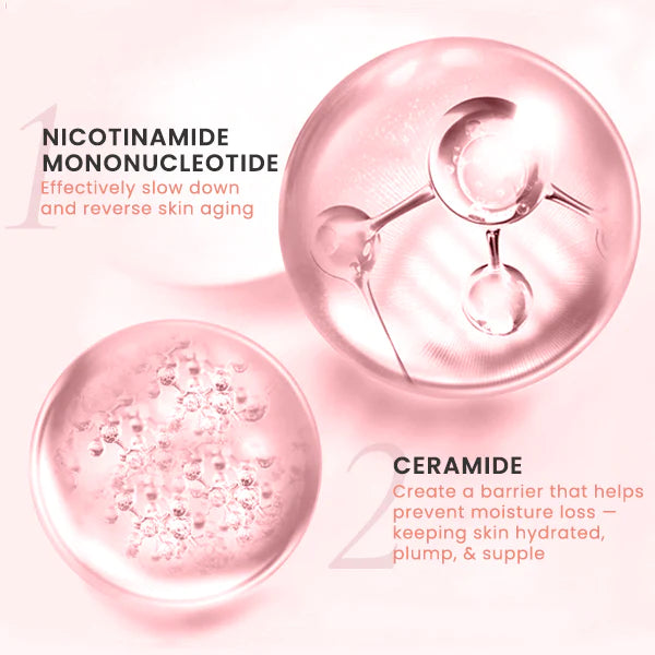 Aqua (Wasser), NMN, Pentylene Glycol, Propanediol, Sodium Hyaluronate Crosspolymer, Panthenol, Ahnfeltia Concinna Extract, Glycerin, Trisodium Ethylenediamine Disuccinate, Citric Acid, Isoceteth-20, Ethoxydiglycol, Ethylhexylglycerin, Hexylene Glycol, 1,2-Hexanediol, Phenoxyethanol, Caprylyl Glycol, Cermide