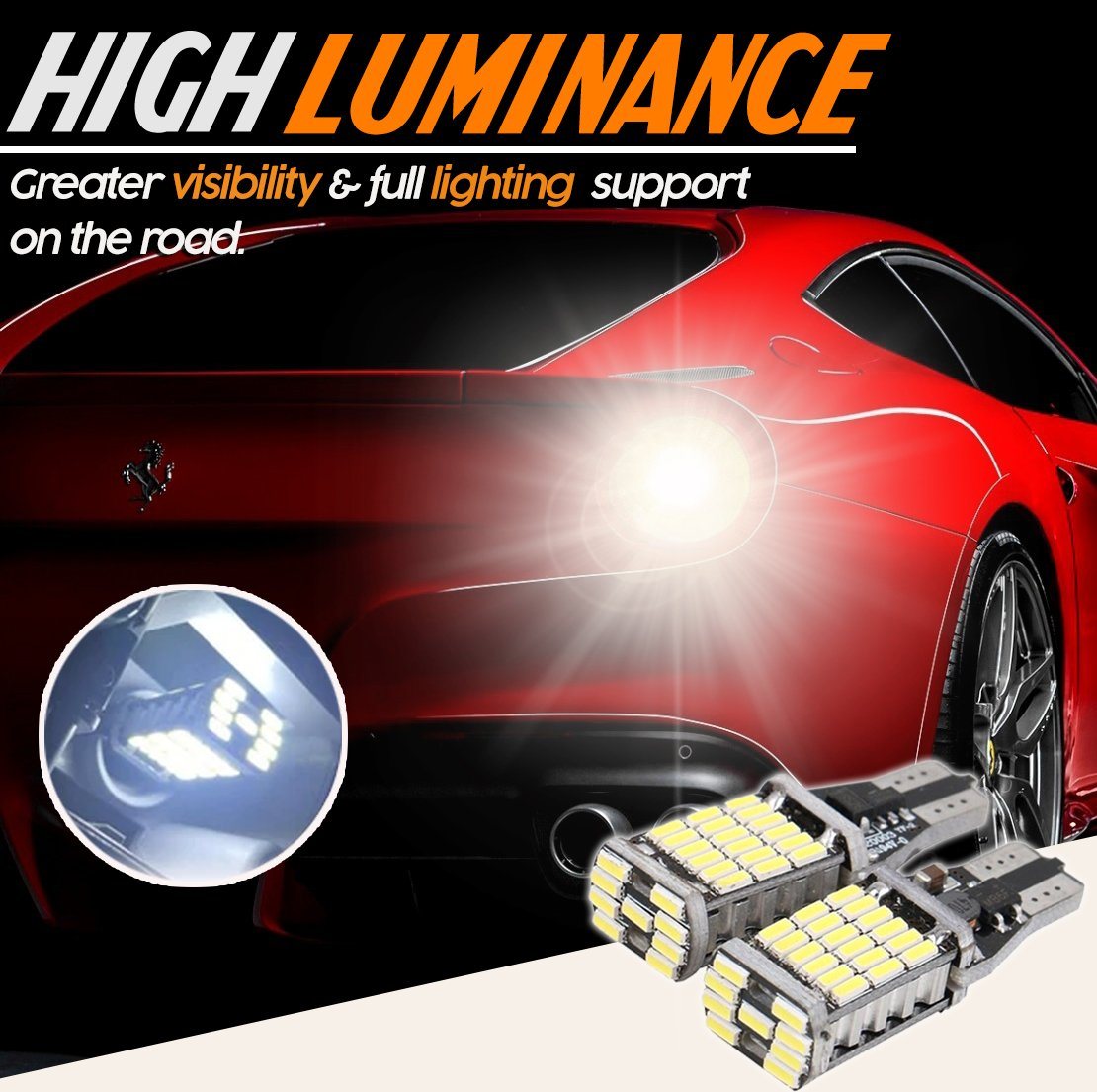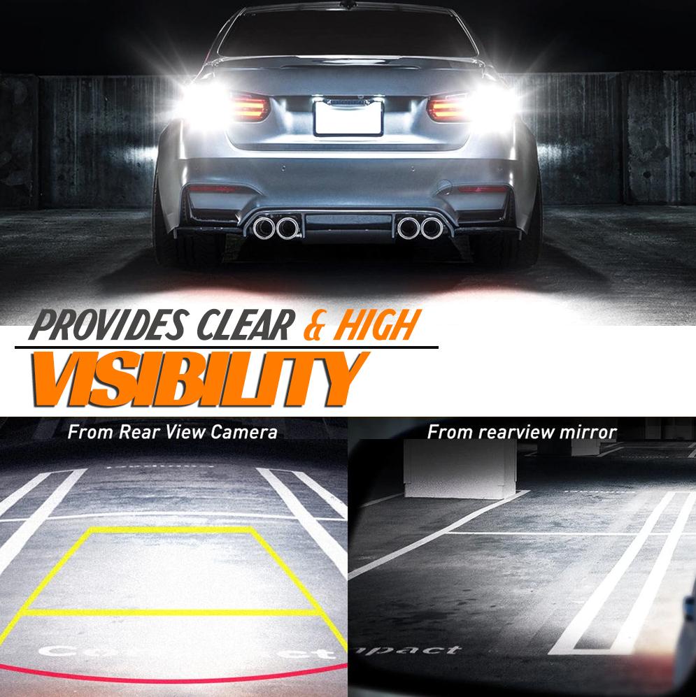 High Luminance outputAbout 1300 lumens per t15 912 921 led backup light bulb, 2600 lumens for both 912 921 LED reverse light bulbs. Size: 0.55" in width, and 1.66" in length, 360-degree full view angle.