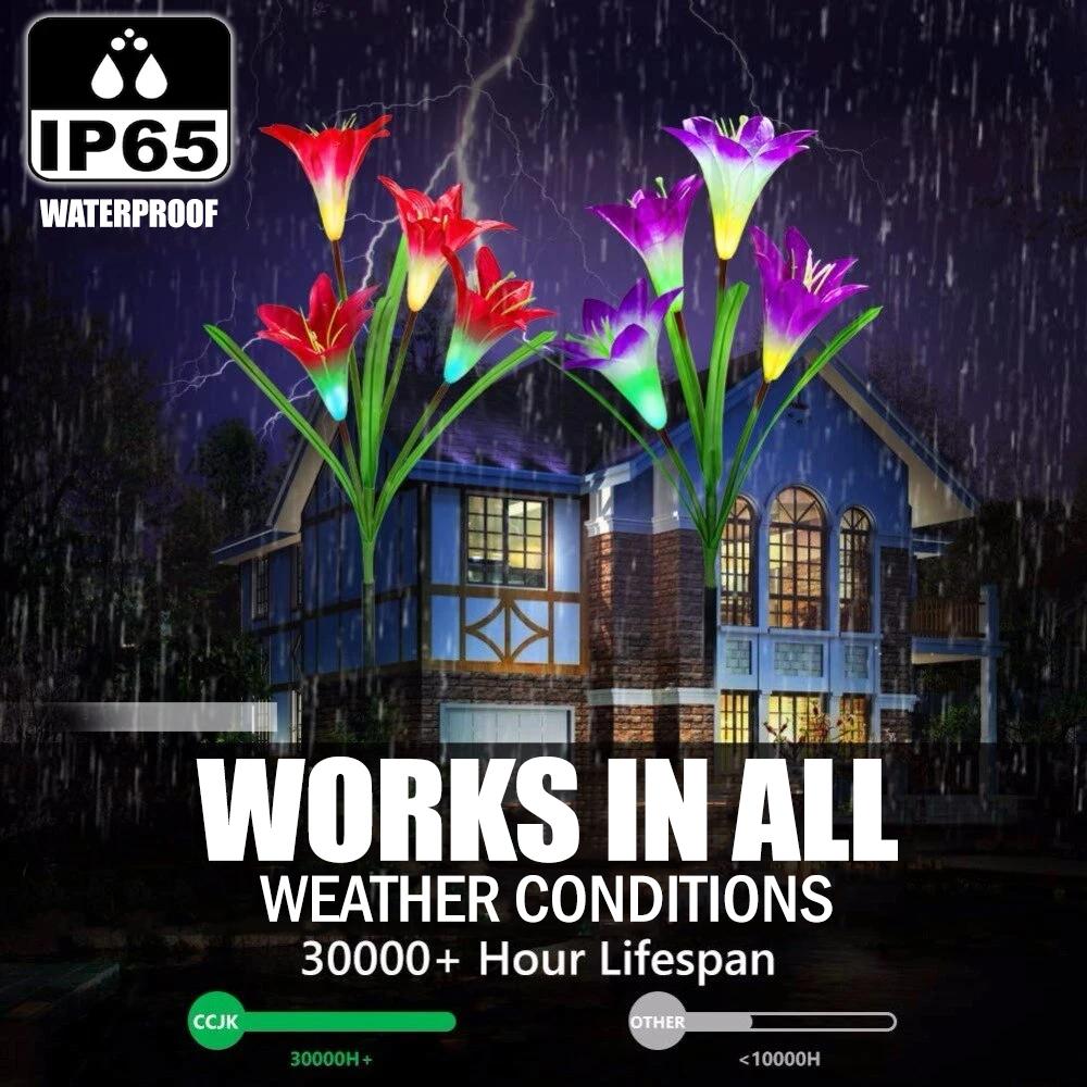 Perfect as path lights, decoration for yards, garden spaces, and events! Light up the night and have an enchanting escape with the most eye-catching color-changing Lily flower lights!