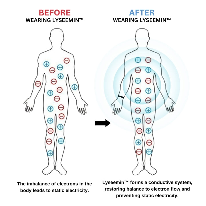 Wissenschaftlich nachgewiesene Leistung: Lyseemin ™ basiert auf wissenschaftlichen Prinzipien, die seine Wirksamkeit bei der Neutralisierung statischer Ladungen sicherstellen. Die Technologie des Armbands wurde gründlich getestet und bewährt und bietet Ihnen eine zuverlässige und glaubwürdige Lösung für das Management statischer Elektrizität in verschiedenen täglichen Situationen.