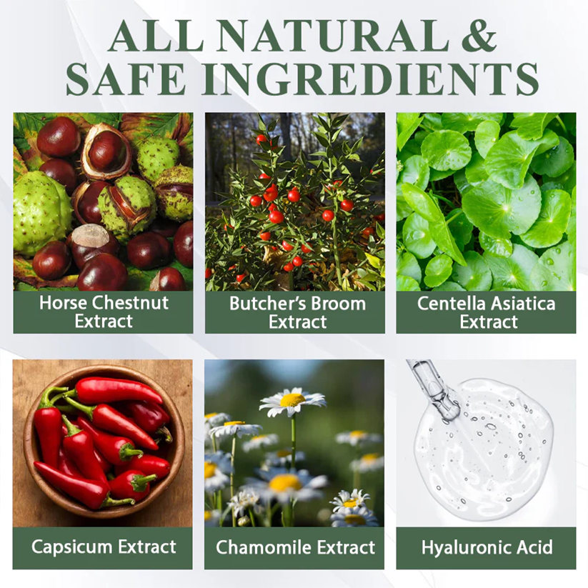 - Horse Chestnut Extract - Helps support healthy vein function and reduce the feeling of heaviness.