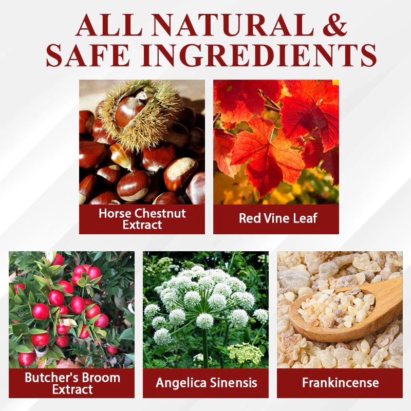 1. Horse Chestnut Extract - Helps strengthen vein walls and reduce fluid leakage, easing leg heaviness and swelling.