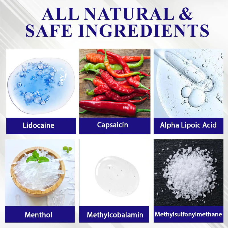 - Lidocaine - Helps numb the affected area by blocking nerve signals, providing immediate pain relief.