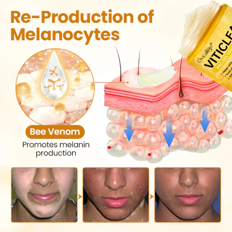 Oveallgo® VitiClear Pro Bee Venom Cream is enriched with high-activity PLA2 to help suppress this abnormal immune response, protect melanocytes, and gradually restore natural skin tone.