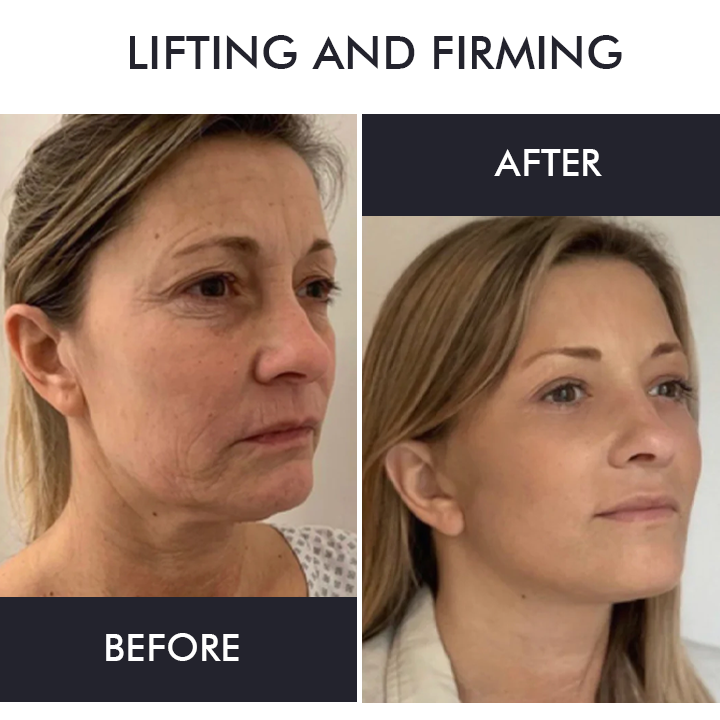 Electrical Muscle Stimulation (EMS), which reaches deep into the skin to excise muscles and activates ATP, noted for its capacity to lift and tone the skin. By exercising the facial muscles ~13000 times per minute, it can lead to a more sculpted and defined appearance, akin to the effects of a natural facelift. This can include lifting droopy eyelids and jowls, as well as tightening sagging skin. This process not only contributes to anti-aging effects but also enhances the skin's overall texture and tone, making it appear more vibrant and healthy