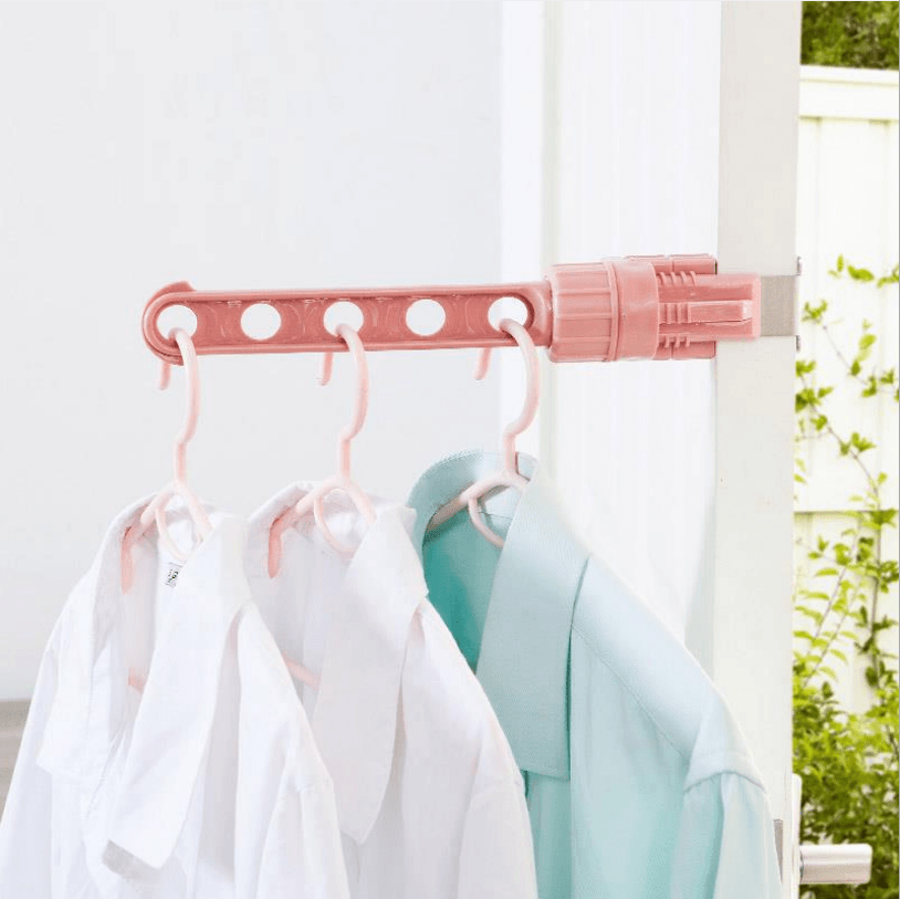 Clip the rack on your window frame, sliding door, etc. Then tighten the bolt to hang the clothes. You can also add crossbars to use in combination, so you can hang more clothes without taking too much space.