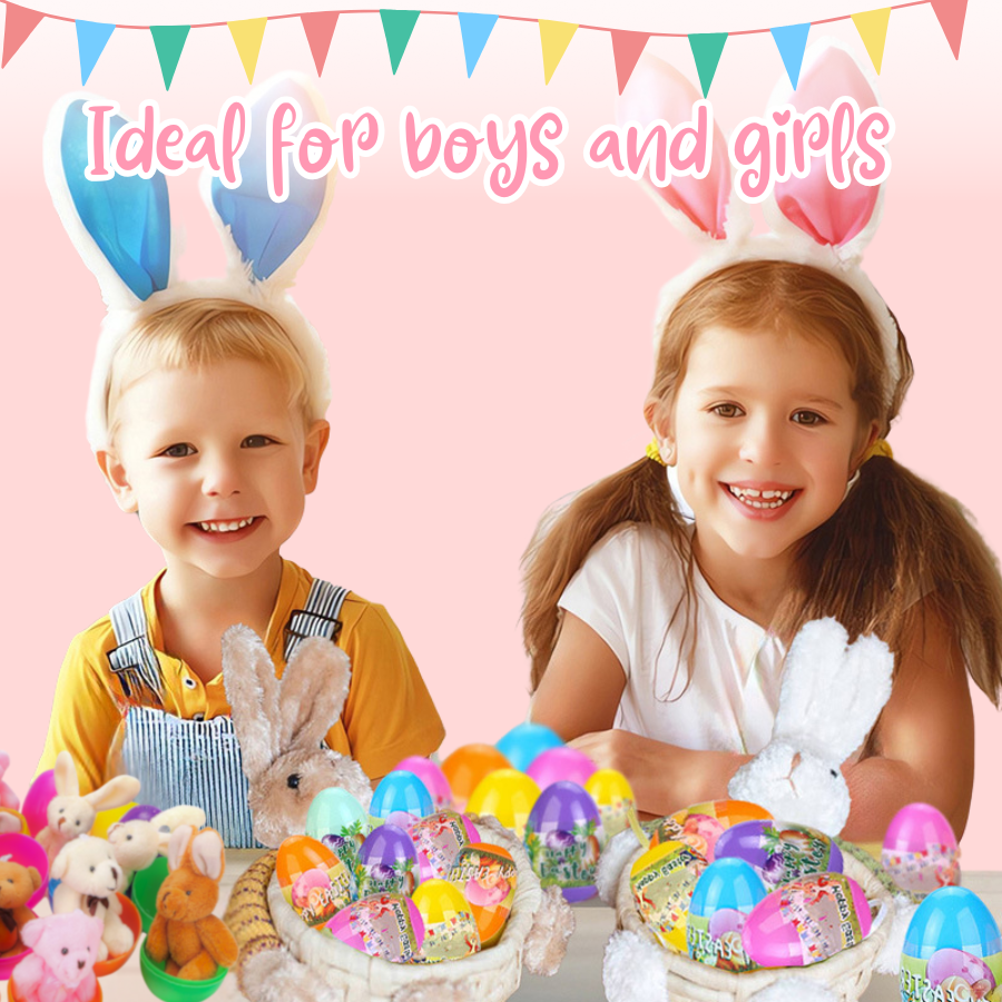 Watch their excitement as they open each egg to reveal a soft plush or fun random toy!