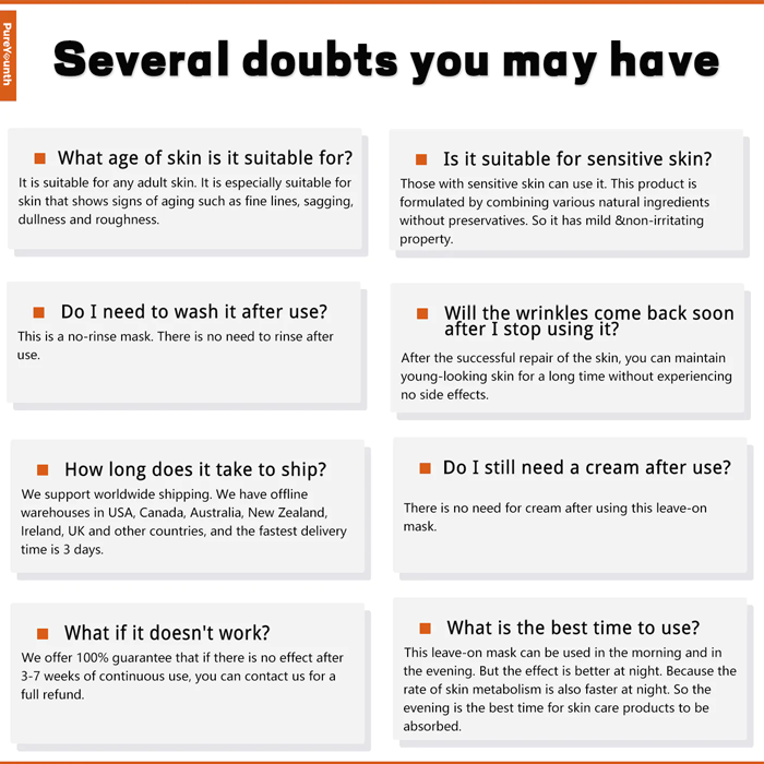 It can solve a number of skin aging problems such as fine lines, wrinkles, crow's feet, dry skin, dull skin, senile plaques or uneven skin tone. It is very affordable and you can only use it as your skincare routine. Or you can mix it with other ingredients. This mask is safe for all skin types, including sensitive skin. I haven't had any skin surgery, RewindAge has saved me gazillions of money for keeping my skin young!