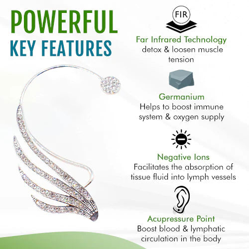 ShinySlim™ AcupressureSlimming Angel Earrings setzen negative Ionen frei, die die Durchlässigkeit der Zellmembran erhöhen können, um die Aufnahme von Gewebeflüssigkeit in die Lymphgefäße zu erleichtern. Dadurch wird die Verstopfung des Lymphsystems verhindert.