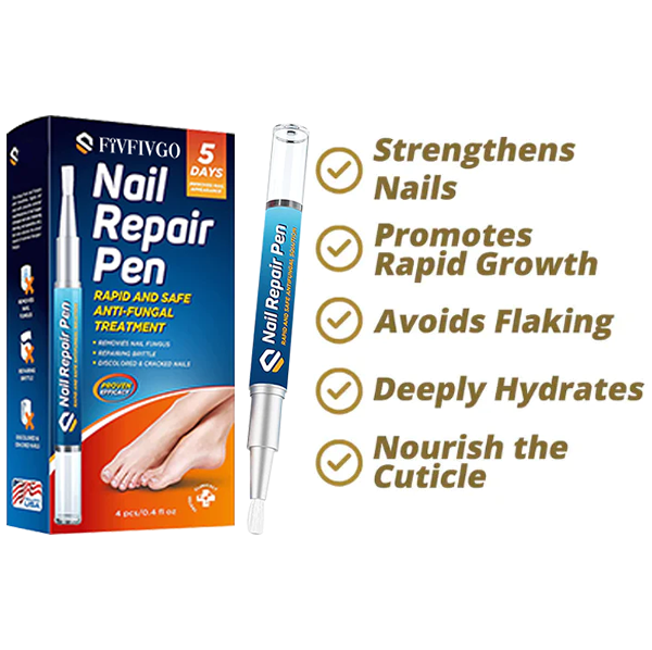 Mais ce n'est pas tout, le stylo de traitement de l'onychomycose Fivfivgo™  cible également d'autres problèmes d'ongles courants tels que les ongles cassants, tordus, épaissis et décolorés. Notre formule favorise la croissance d'ongles plus sains et plus forts, réduit la fragilité et le recourbement et améliore leur apparence. Le stylo de traitement de l'onychomycose Fivfivgo™ est la solution parfaite à tous vos problèmes d'ongles.