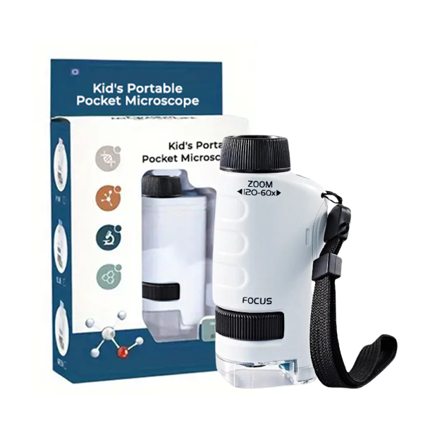 Das tragbare Taschenmikroskop für Kinder arbeitet nach dem Prinzip der optischen Vergrößerung . Es verwendet Linsen, um kleine Objekte zu vergrößern, sodass Kinder Details erkennen können, die für das bloße Auge unsichtbar sind. Die LED-Beleuchtung sorgt für mehr Klarheit, während das kompakte Design für Mobilität sorgt. Dieses Mikroskop wurde entwickelt, um die Neugier von Kindern zu wecken und das Lernen von MINT-Fächern durch Beobachtung im realen Leben zu fördern.