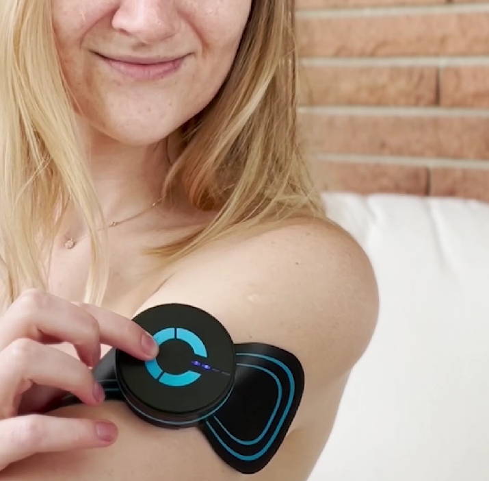 - Drehen Sie zunächst den Wirt mit dem Gelpflaster. Dann die durchsichtige Folie auf dem Gelpflaster freilegen. Bringen Sie das Gerät auf dem Massagebereich an, um zu beginnen.